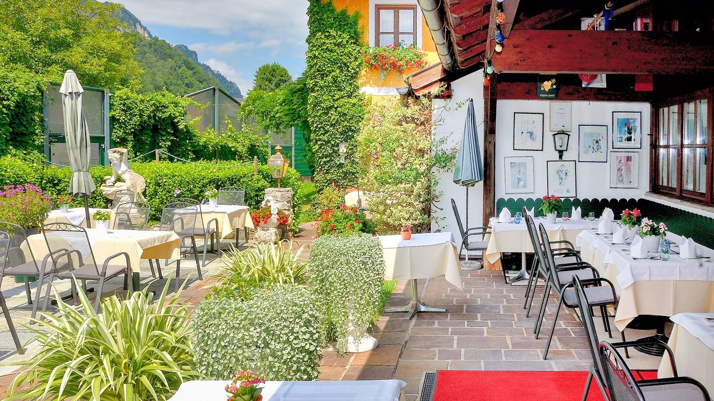Umgeben von einem gepflegten Garten genießen Sie einen herrlichen Blick auf den Salzburger Hausberg, den Untersberg. Die Küche ist für regionale Schmankerl bekannt. Spezialisiert hat sich der Wirt auf selbstgemachte Pasteten und auf frische, heimische Fische.